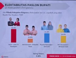 Elektabilitas Paslon Bupati Fauzi unggul dari pasangan calon lain, Fauzi- Laras 36,20%, Adi – Hizbullah 10,60%, Riyanto – Umi 25,20% sedangkan Ririn – Wiriawan 18,70%.
