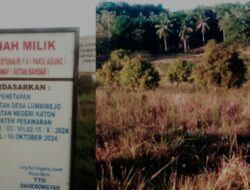 Pesawaran.Ekstranews- Munculnya sporadik (pendaftaran tanah untuk pertama kali) tanah yang dikeluarkan Kepala Desa Lumbirejo, Kecamatan Negeri Katon, Kabupaten Pesawaran per 24 Oktober 2024 atas tanah seluas 189 hektare berbuntut kasus hukum. Pasalnya, tanah Sumarno Mustopo seluas 90 hektare disebut oleh Ketua Ormas Garuda Berwarna Nusantara cacat hukum dan diduga ada pemalsuan.